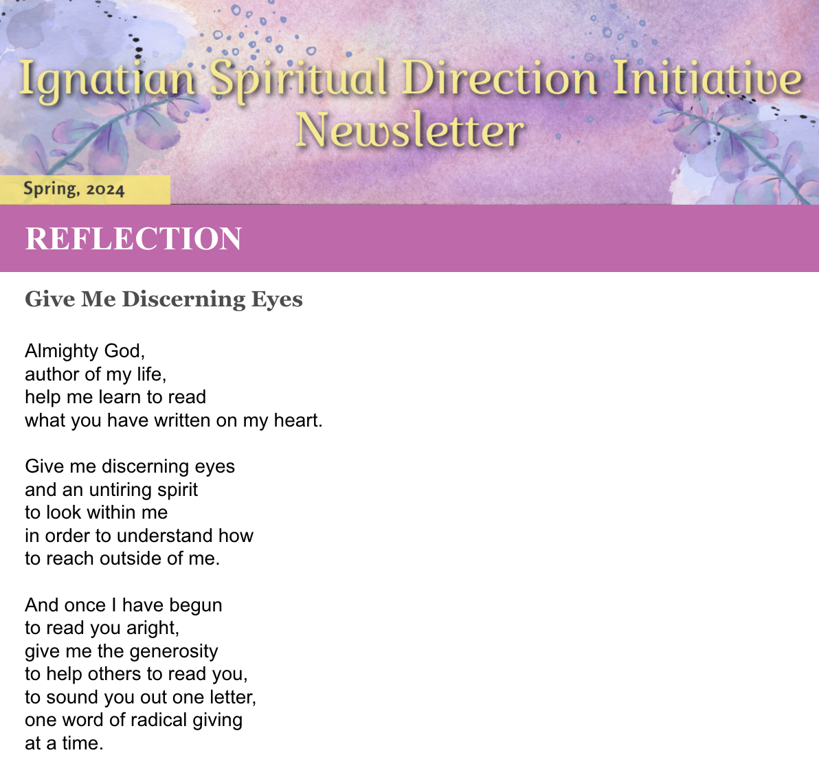 Click here to read the entire Spring 2024 Ignatian Spiritual Direction Newsletter from OIS.